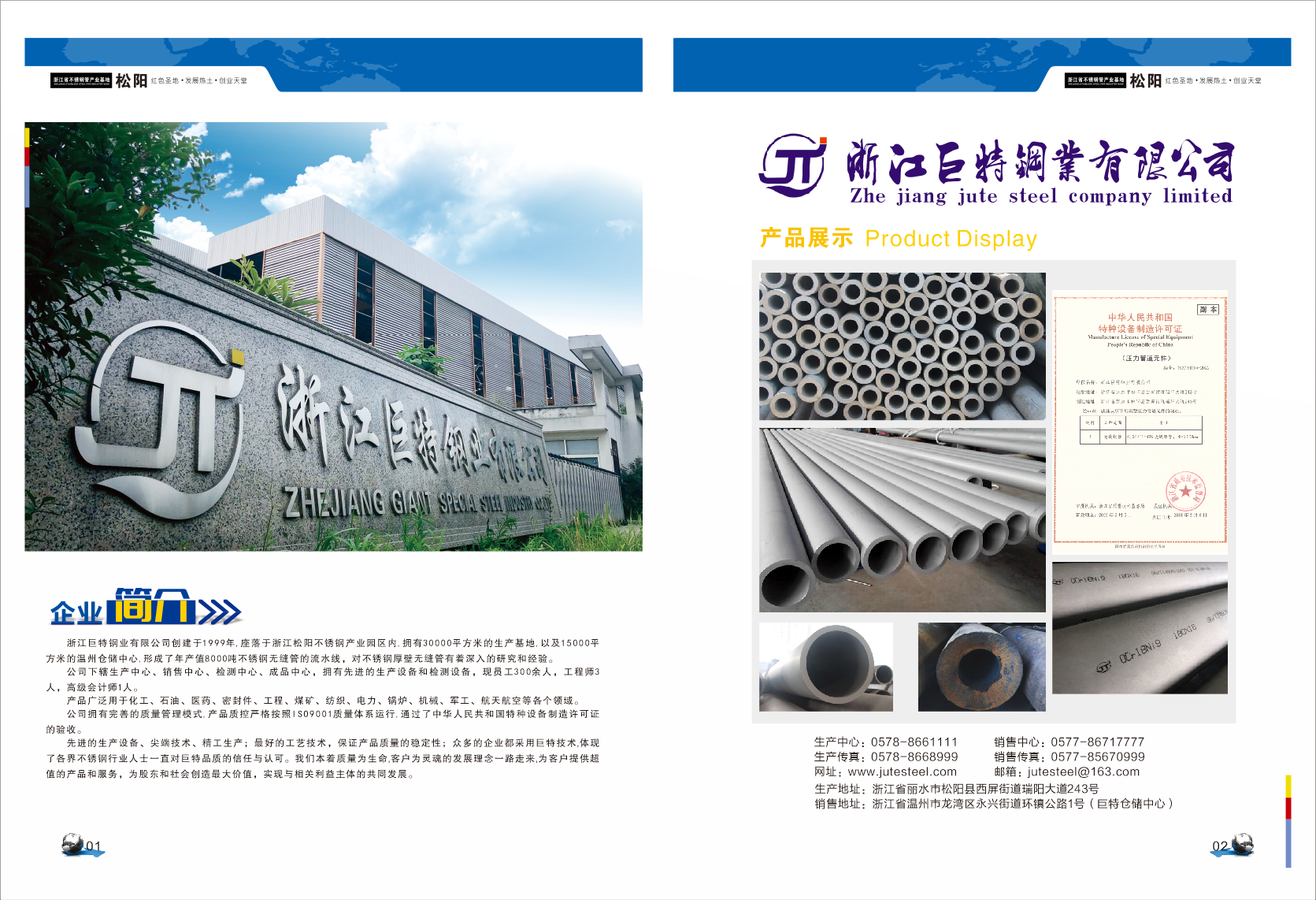 巨特鋼業有限公司是專業生產各種規格不銹鋼管的企業,公司擁有一流的設備,高素質的人才,完善的質量管理模式,產品質控嚴格按照ISO9001質量體系運行,使產品精益求精。 溫州巨特不銹鋼有限公司引進先進的生產設備、尖端技術精工生產不銹鋼產品;表面光潔度衛生精度高、尺寸精確、高性能等優勢特點。最好的工藝技術,保證產品質量的穩定性;眾多的企業采用巨特高精度鏡面是對巨特產品品質的肯定。材質:304、316制造,專營:厚壁不銹鋼管規格:外徑φ25-φ273。有現貨供應304不銹鋼管 。浙江巨特鋼業有限公司倉儲中心位于龍灣區永興大塘(金洲特鋼)對面,電話:0577-85809555 0577-86859718 0577-86717777 手機:13777776337 13356188337 我們將以為用戶提供最好的服務為宗旨,竭誠為您服務!