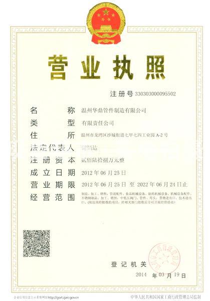 • 溫州華鼎管件制造有限公司,營業執照
