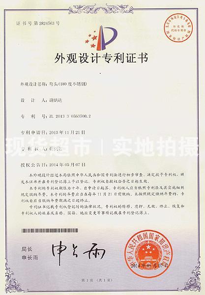 • 溫州華鼎管件制造有限公司,華鼎外觀設計專利證書